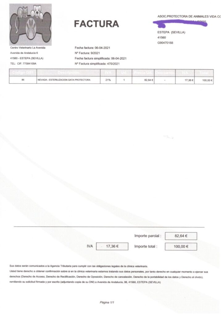 Con vuestra ayuda recaudamos 100€ de los 275€ que debíamos de su cirugía de orejas, analítica y castración, así que aún debemos 175€ al veterinario de Nevada.
