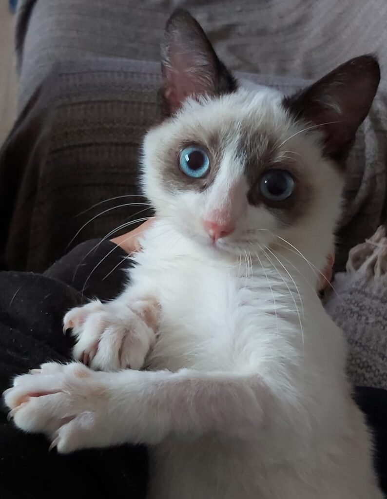 Para los que aún no conocéis a este súper guerrero, Grow se cruzó en nuestras vidas hace cosa de un mes y medio. A la persona a la que se lo habían “regalado” no le interesaba quedárselo porque Grow estaba enfermo, tenía unas diarreas horribles y no paraba de llorar desconsolado. Ese día lo ingresamos de urgencia en la clínica, en la que ha pasado casi un mes. Al principio parecía que su problema era sólo las giardias a las que dio positivo, pero pasaban los días y no mejoraba. Finalmente y después de varias pruebas se confirmaba que Grow es positivo a PIF. Ese día se nos vino el mundo encima. No nos dieron muchas esperanzas sobre su destino. Pero Grow no ha dejado de luchar en ningún momento y, ayudado de su tratamiento, está cada día mejor. No sabemos qué pasará finalmente, pero este pequeño gran luchador se está aferrando a la vida con todas sus fuerzas.