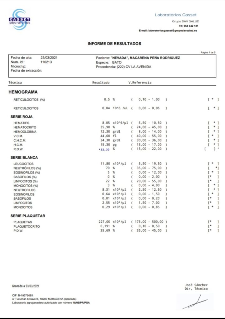 Ya tenenos los resultados de la sangre que se le extrajo. Es negativa a leucemina e inmuno, pero ha dado positivo en calcivirus y herpesvirus. Las heridas le van cicatrizando muy bien. Ella está enfadada. No le ha gustado un pelo que la hayamos secuestrado y la tengamos retenida. Ojalá tuviésemos manera de explicarle que lo hacemos por su bien