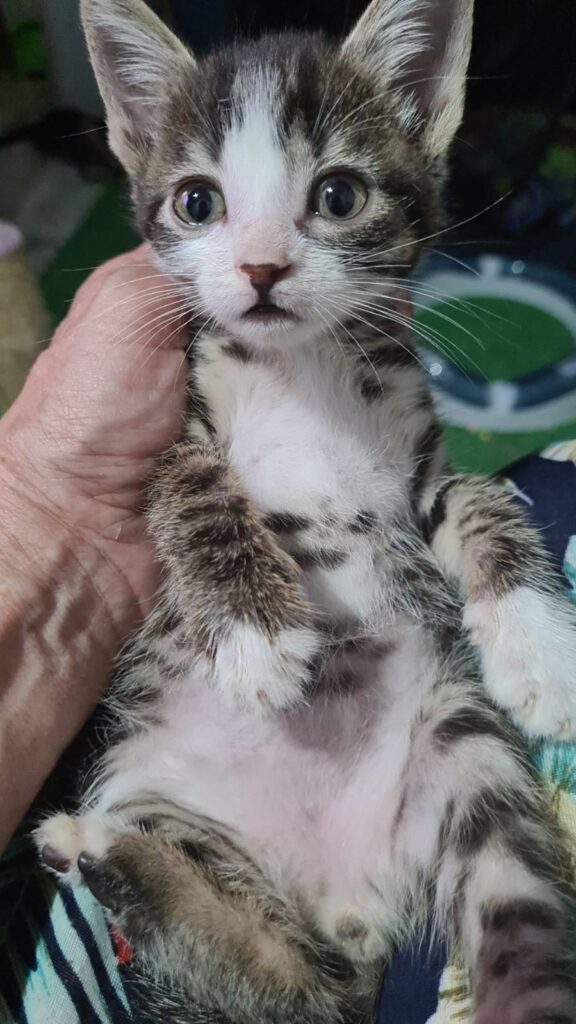 Por suerte, encontramos acogida y pudimos rescatarlo. Pero al final resultó que no era lactante, sino que es un poco más mayor, y muy guapo, y muy simpático, y muy lindo, y muy conquistador.. él es BACO🥰