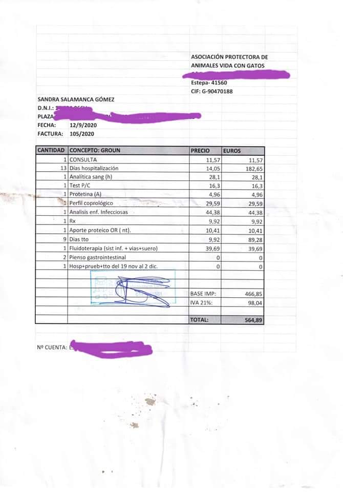Hemos podido abonar otros 100 euros de lo que debemos en el veterinario de la factura de Grow. Ya sólo nos faltan 164,89€ ¿nos ayudáis a recaudarlo?